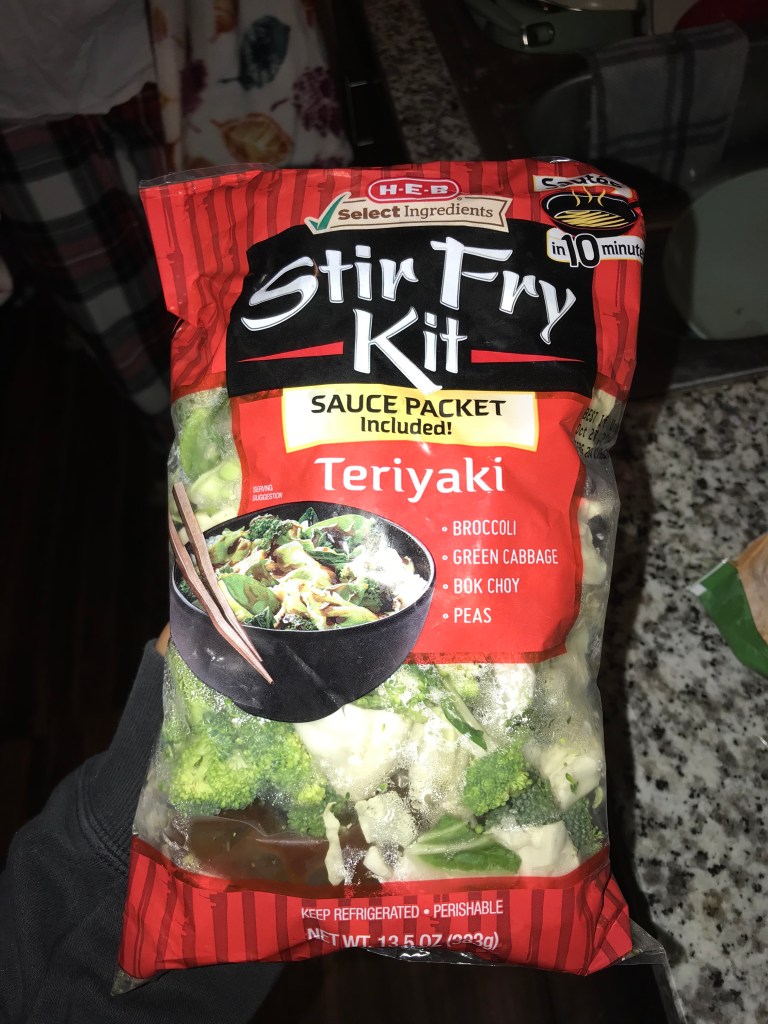 This week while I was shopping in the store I came across a super interesting looking meal. It was a pre-packaged teriyaki mix which included snow peas, cabbage, broccoli, and some teriyaki sauce. I was really curious if it would actually be good so I gave it a try. I decided that I would prepare this meal for me and my roommate, who is a pretty picky eater, to review.